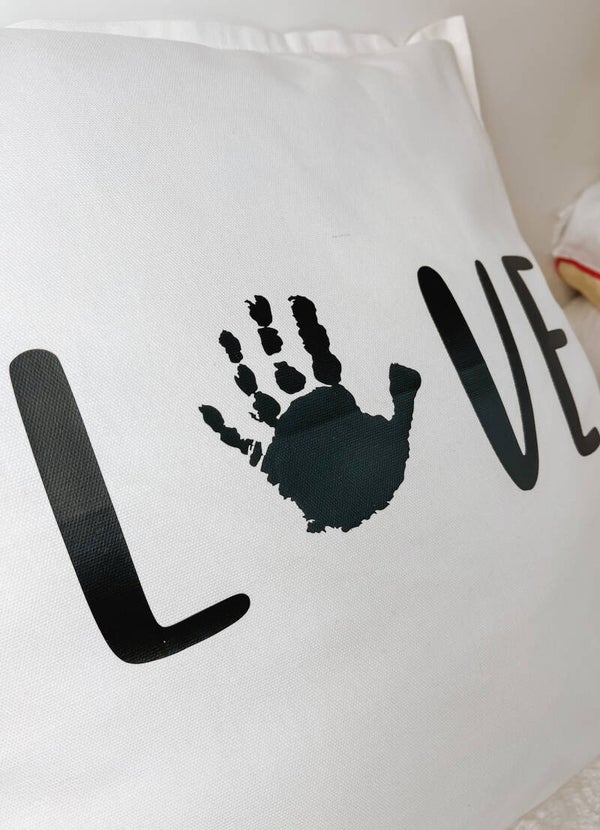 Kissenhülle + passendes Inlett in 40x40cm mit individuellem Handabdruck.